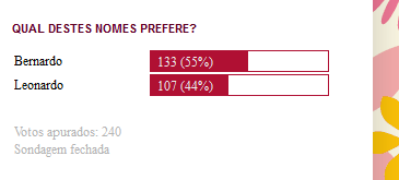 O que é que vocês acham destes nomes? Qual deles preferem? Não se esqueçam de votar!